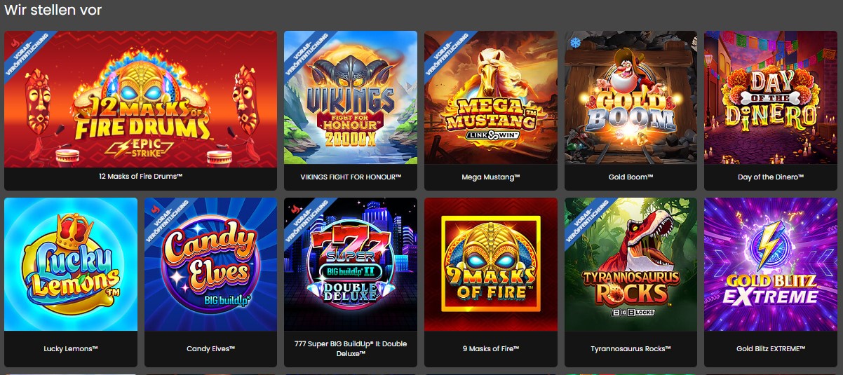Slots machen den Großteil des Spielangebots aus. Dies liegt daran, dass solche Spiele sehr gefragt sind. Der Katalog verfügt über Spielautomaten mit verschiedenen Bonusfunktionen wie Scatter, Free Spins, Wild-Symbole, Bonusrunden, Risikospiel usw.